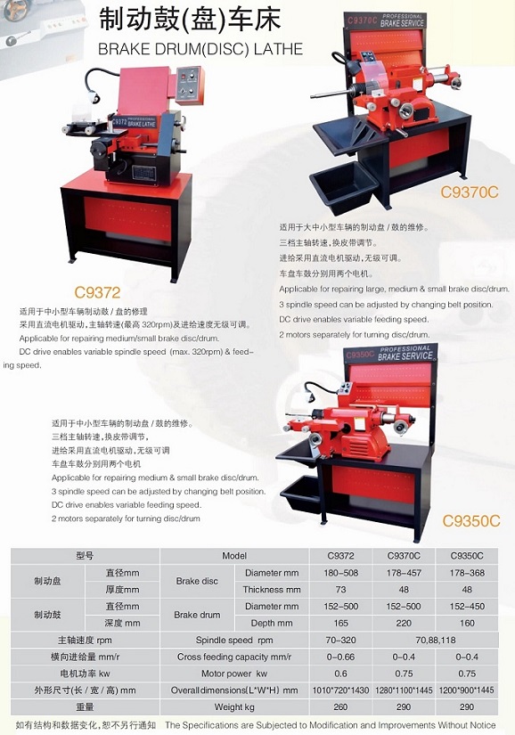 【簡要說明】:適用于小型車輛制動鼓/盤的修理。C9335升級款優(yōu)化的雙刀結構更方便調(diào)整進給量整機剛性更強主要技術參數(shù)Main SpecificationsC9335A加工直徑